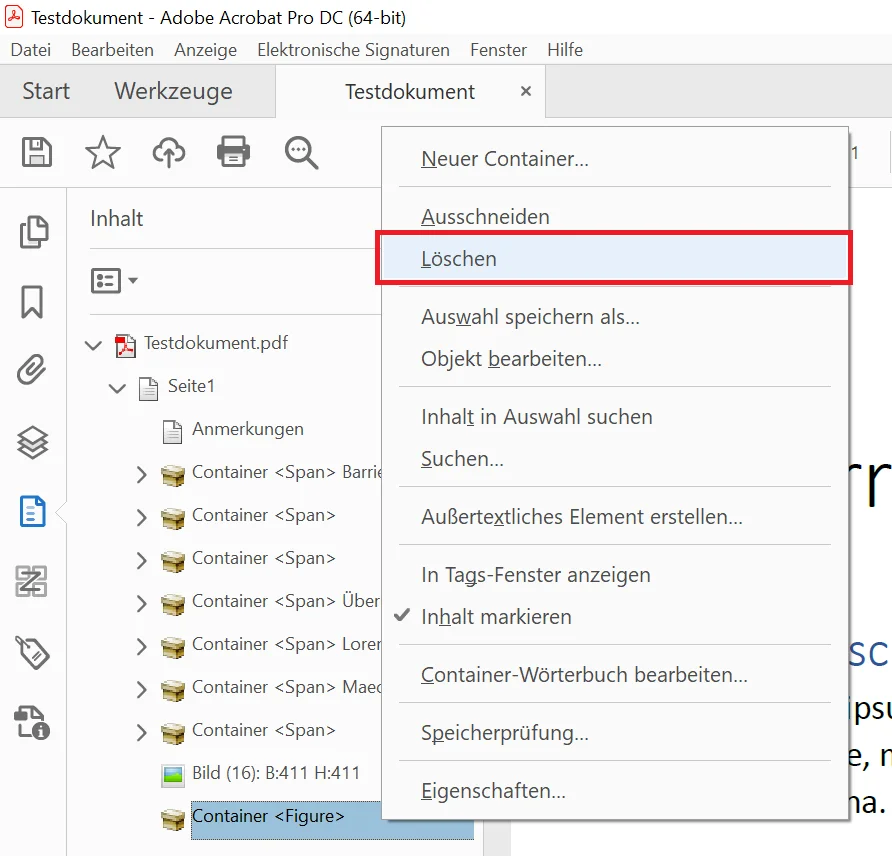 - Im Inhalt-Strukturbaum den Container des Bildes finden > das Bild-Element aus dem Container ziehen