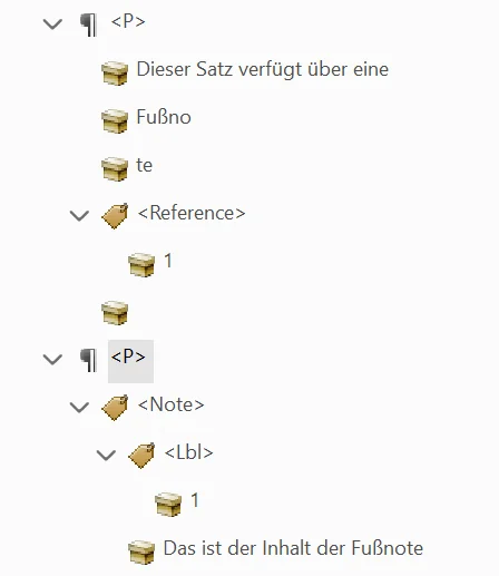 Hinweis: Der Absatz-Tag enthält nun den Inhalt und die Fußnoten-Referenznummer separat.