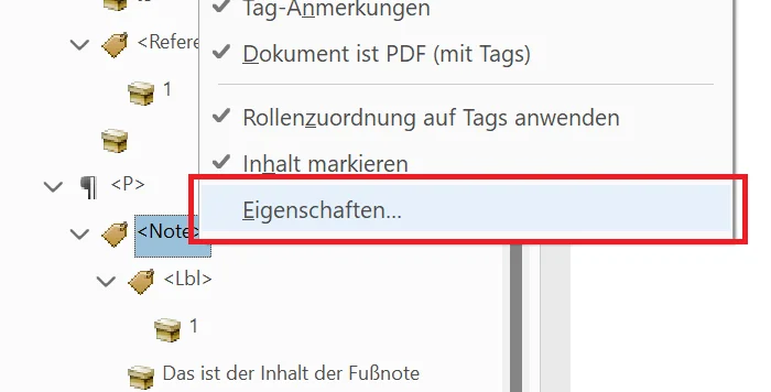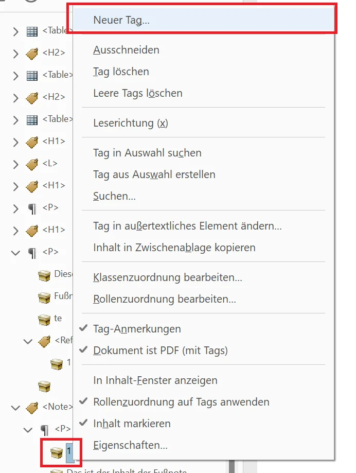 - Im Tag-Strukturbaum Rechtklick auf Fußnoten-Referenznummer (innerhalb des Note-Tags) > “Neuer Tag…”