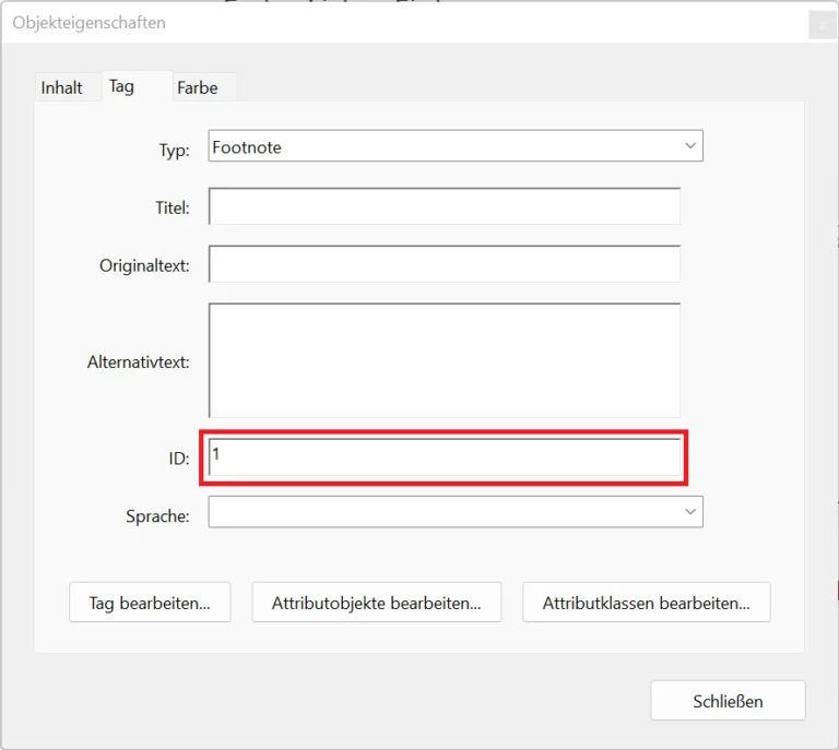 Hinweis: Die vergebene ID muss im Dokument einzigartig sein und darf nicht für anderen Fußnoten-IDs verwendet werden.
