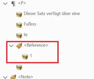 - Im Tag-Strukturbaum Fußnoten-Referenznummer in den Referenz-Tag ziehen