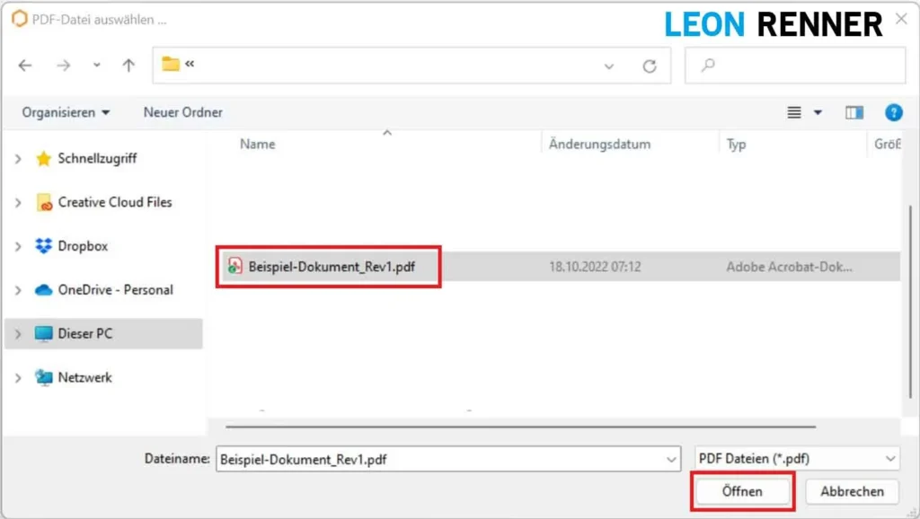 - Dokument auswählen > “Öffnen”