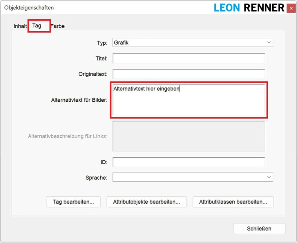 Option 2: Alternativtext für getaggte Grafik festlegen (falls inhaltlich relevant)
