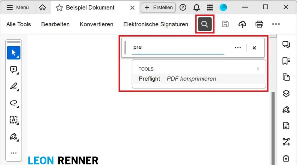 - In der Suchzeile nach dem Tool “Preflight” suchen und öffnen