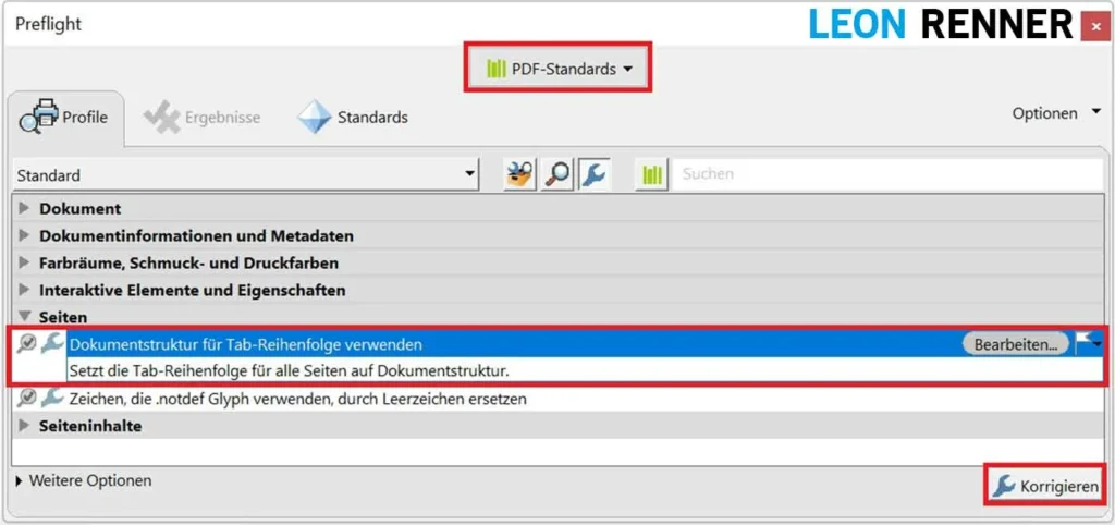 - “PDF-Standards” auswählen (im oberen Bibliotheken-Dropdown) >